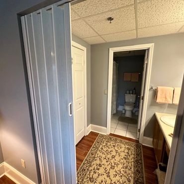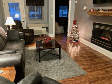 Unit 703 has two bedrooms (one king and one queen) and two baths, a well-equipped kitchen, washer & dryer, TVs in the living area and each bedroom and balcony overlooking the creek. It will sleep six, with a sofa bed in the living room.